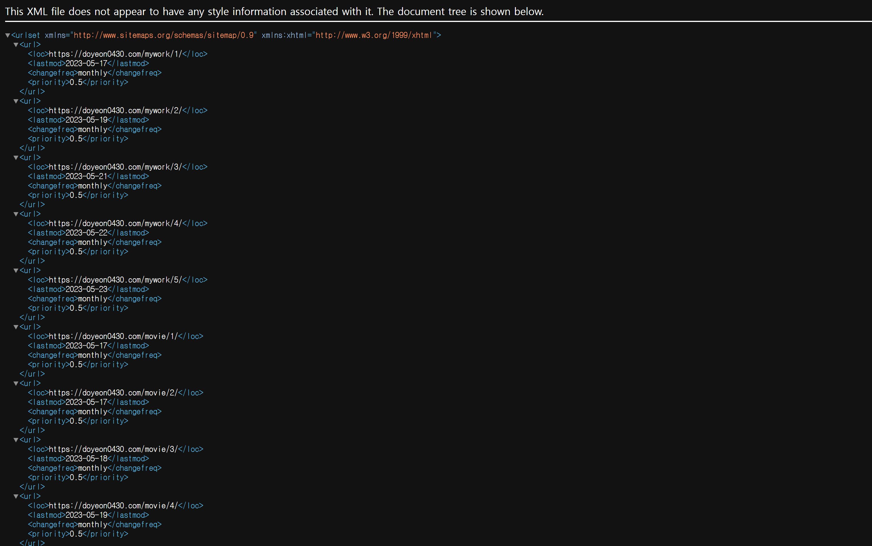 sitemap은 검색엔진이 웹사이트의 페이지와 구조를 이해하기 쉽게 제공하는 XML 파일입니다.