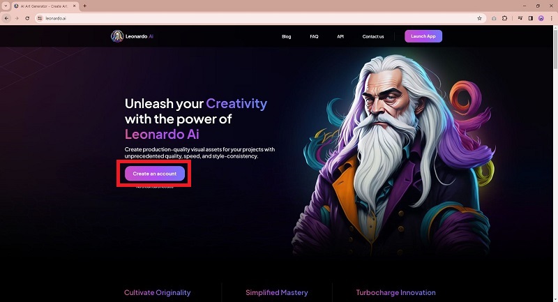 브라우저 검색창에 Leonardo AI를 입력합니다.